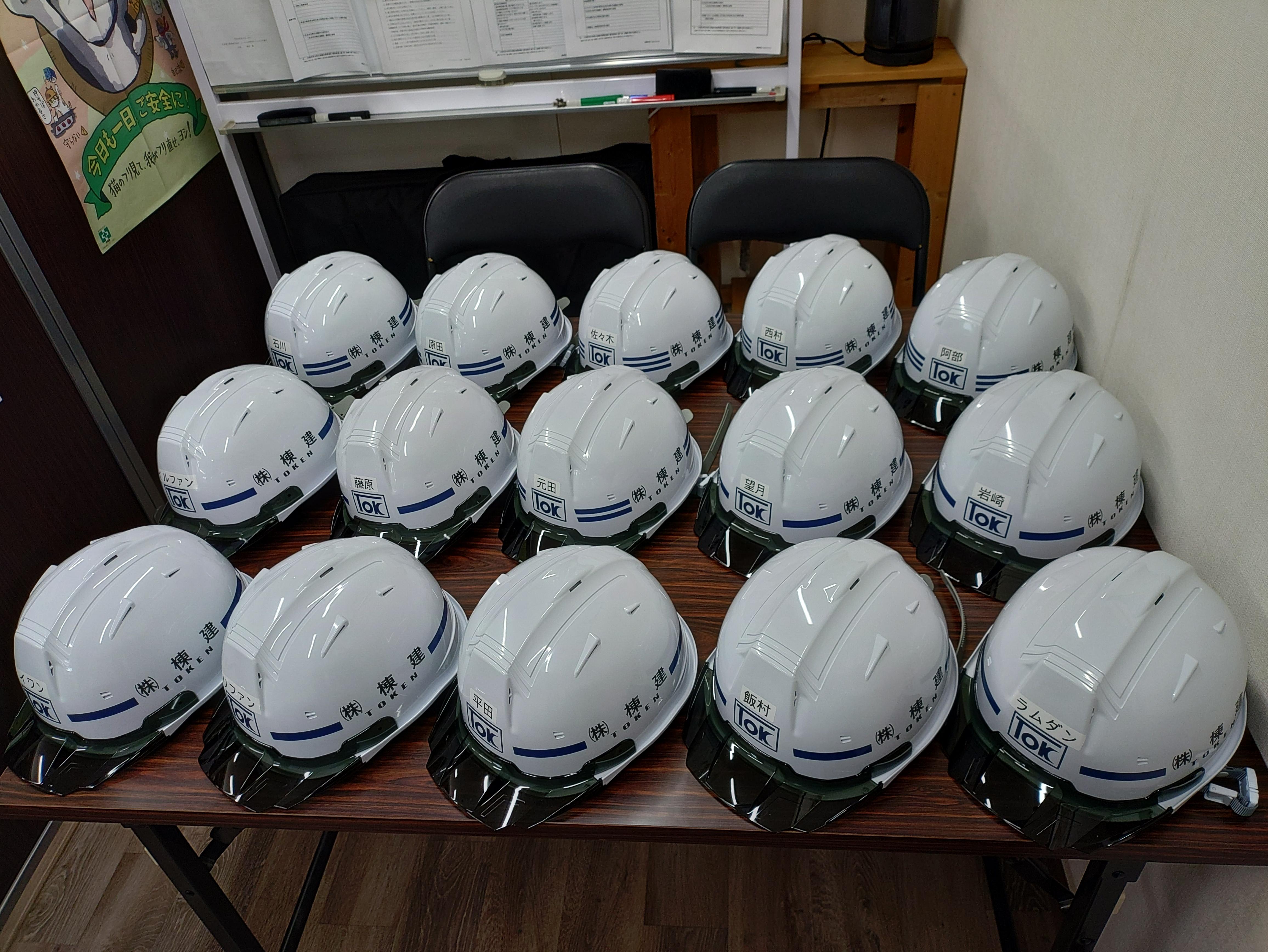 新しくシールド付きのヘルメットも全員に支給し、コンクリート打設時や足場解体時に